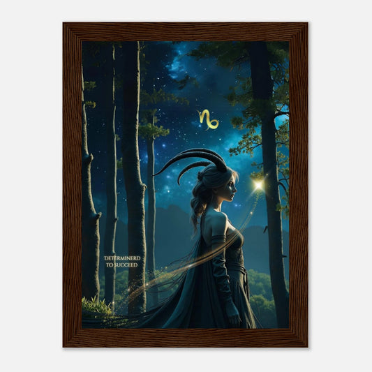 Capricorn Zodiac Sign Framed Poster – Classic Matte Paper with Wooden Frame